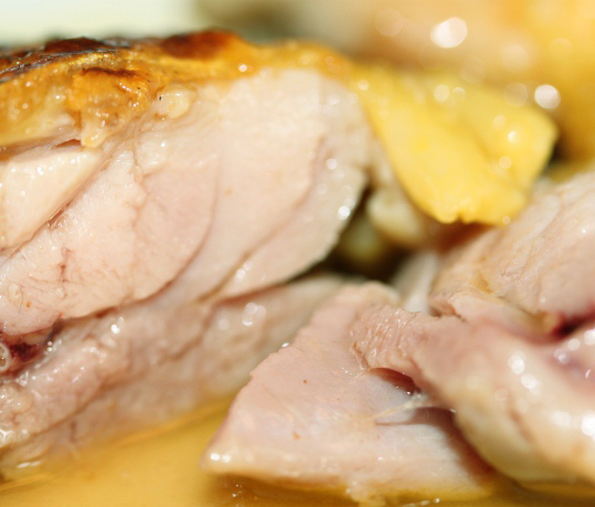 Vamos con el pollo... Asar una pechuga de pollo y conseguir que quede la carne jugosa y la piel dorada y crujiente ha sido desde hace mucho tiempo uno de los grandes retos de la cocina. Tanta es la fuerza del hábito que, ante los pollos nuestros de cada día, no nos damos cuenta de lo secos que están, y pocos se plantean la forma de mejorarlos. Afortunadamente la V Gama de produtos ha conseguido llevar el pollo, y en concreto la pechuga, a su máxima expresión de jugosidad. Y todo ello gracias a una cocción especial en la cual retenemos todos sus líquidos. La cocción se realiza con sus propios jugos. Y el resultado es majestuoso...